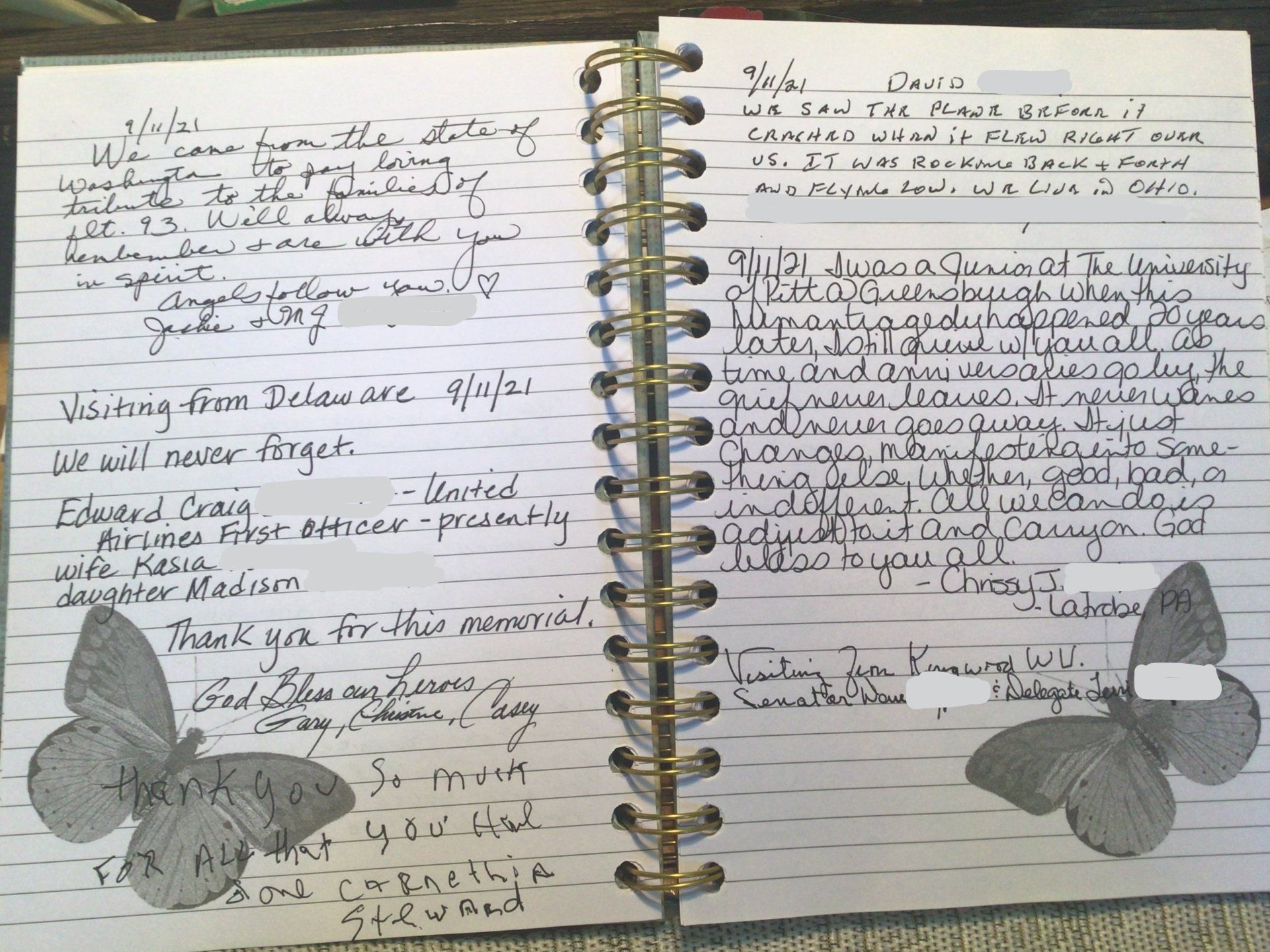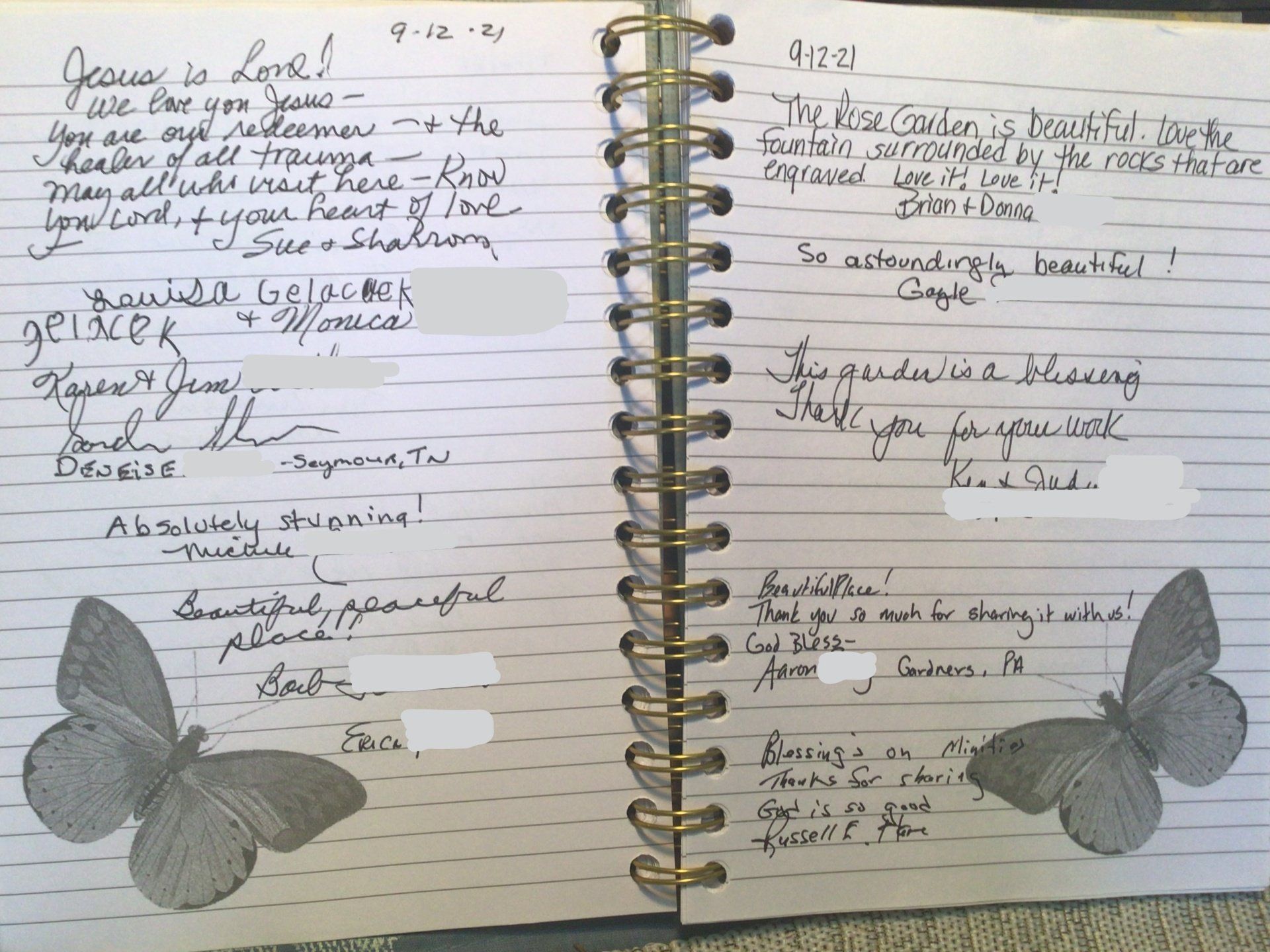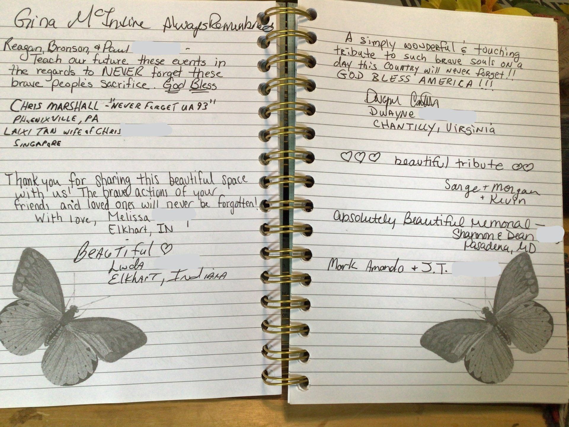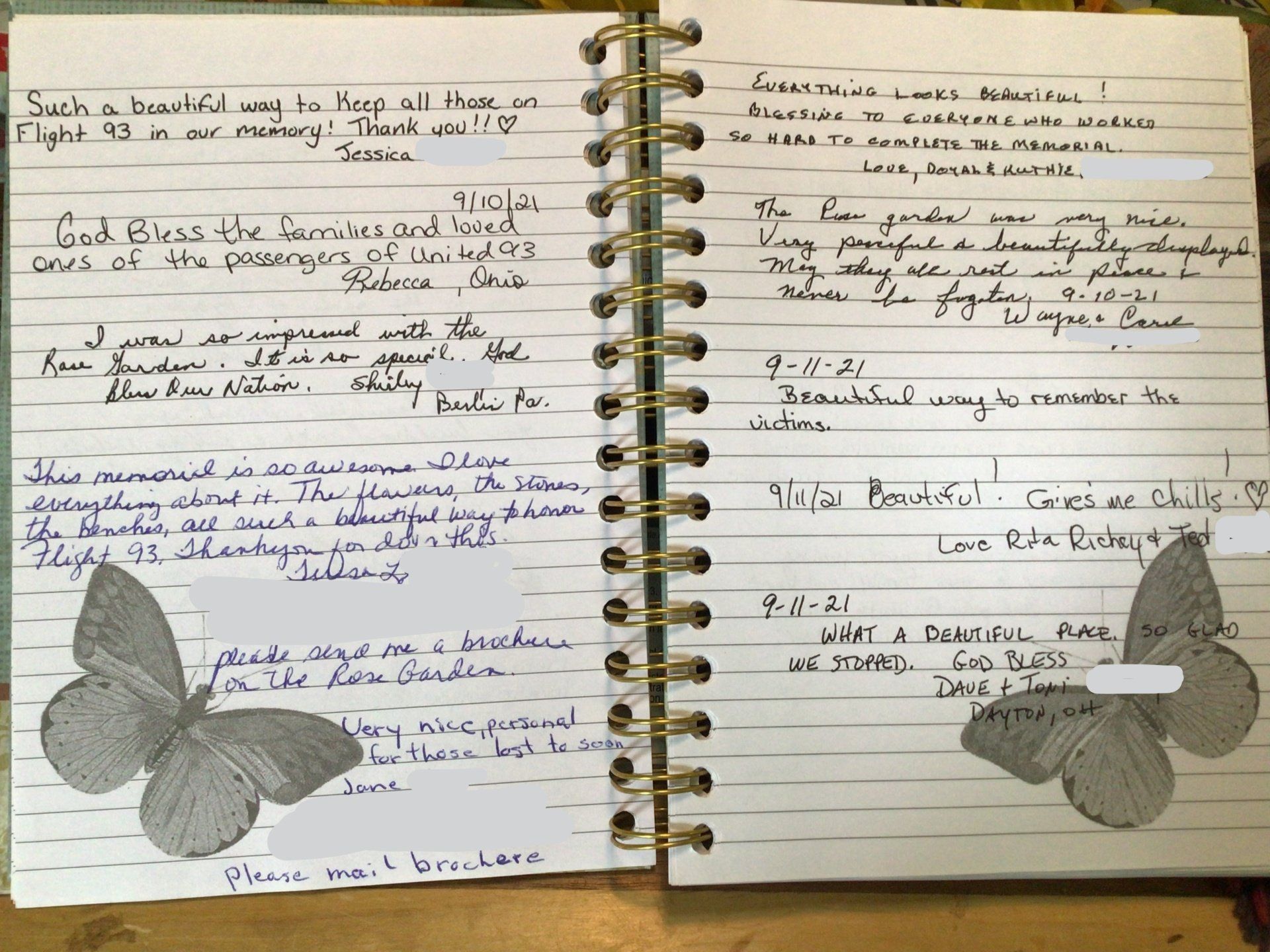 Our Visitors’ Book captured the beautiful thoughts and feelings of those who spent time at the Rose Garden over the 9/11 weekend. Several pages are pictured below.