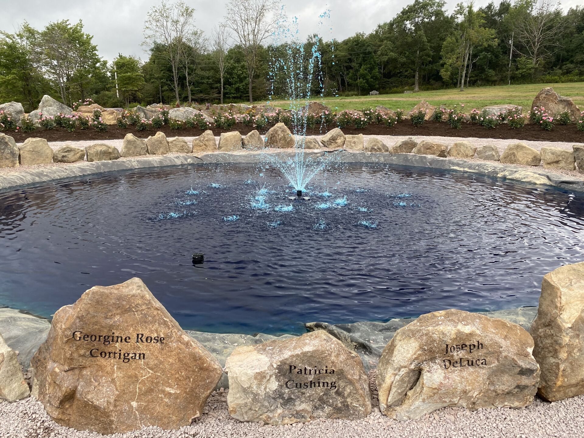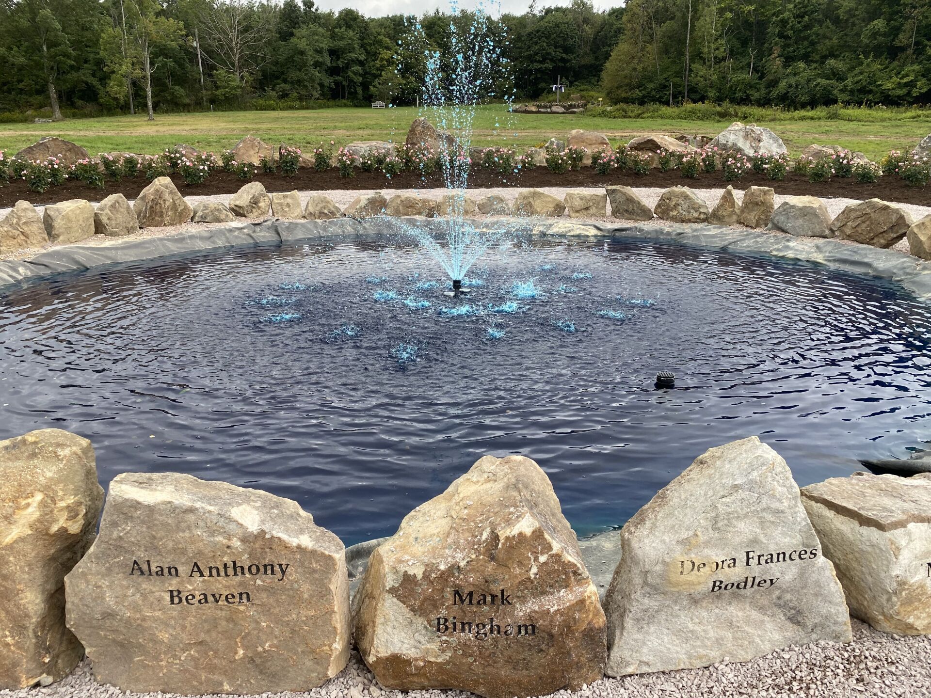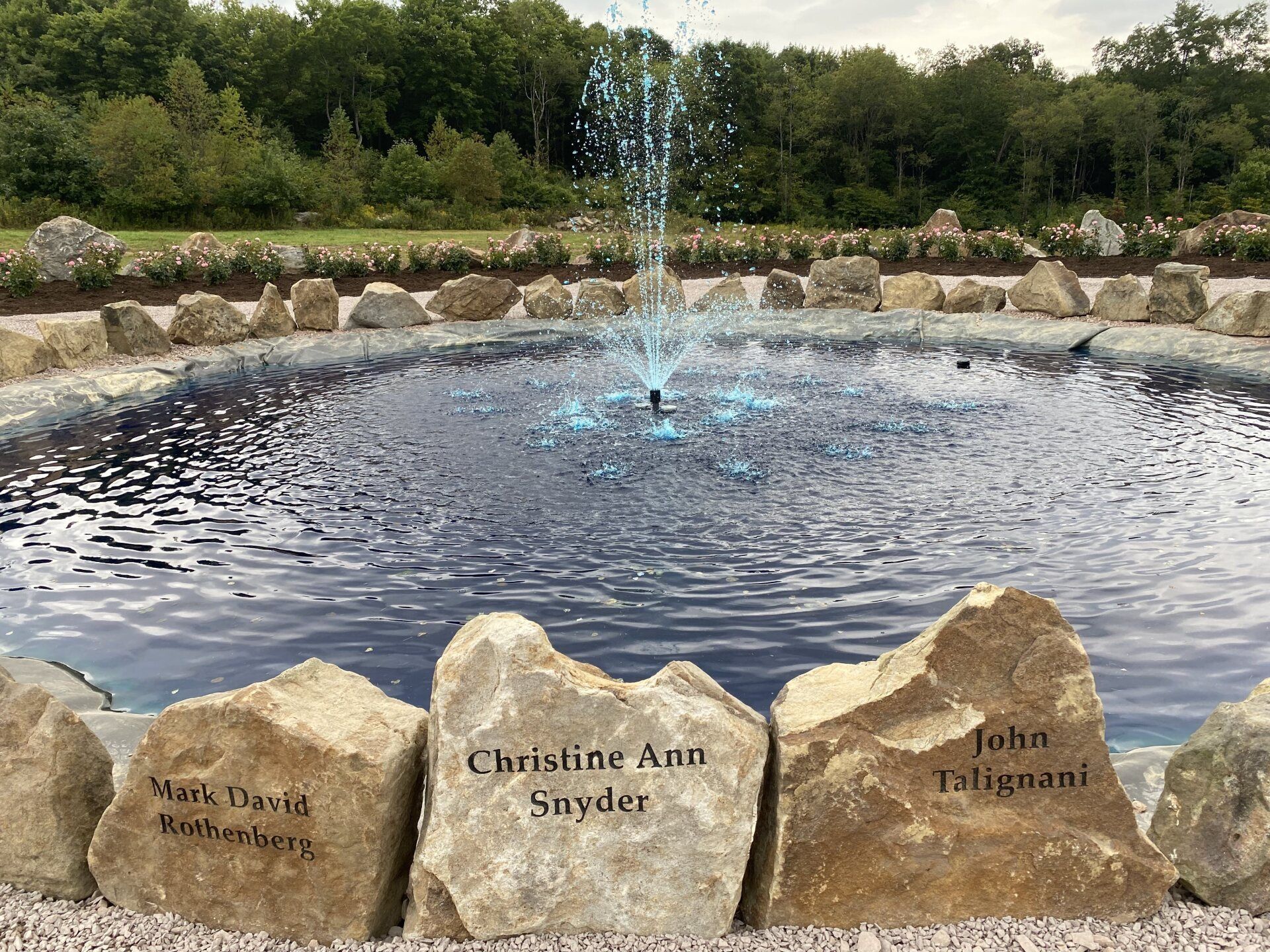 The names of the 40 heroes are engraved on the rocks surrounding the fountain in the center of the Remember Me Rose Garden. May we “Never Forget” them and their spirit of unity, faith, courage, and conviction in the face of extraordinarily desperate circumstances. They are true heroes!!