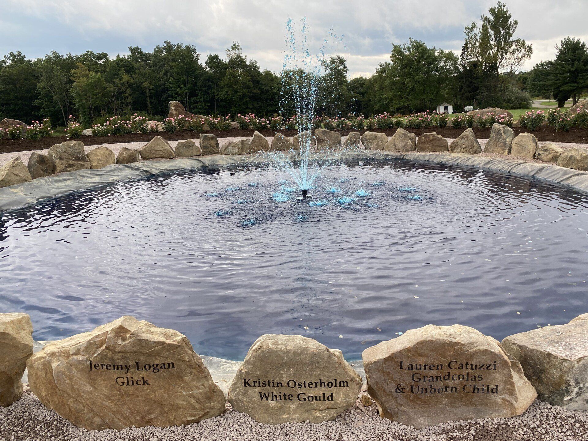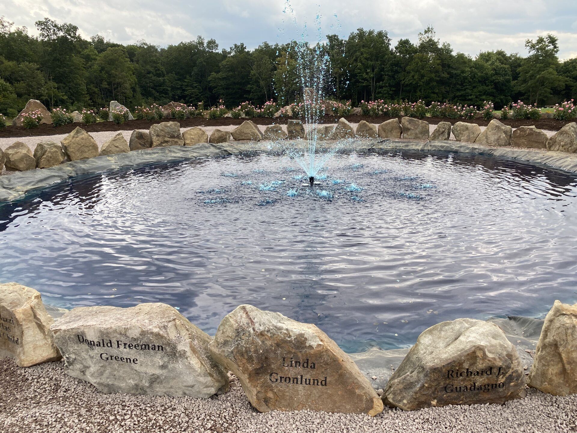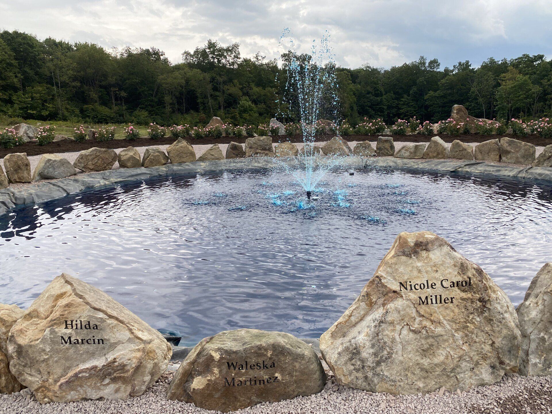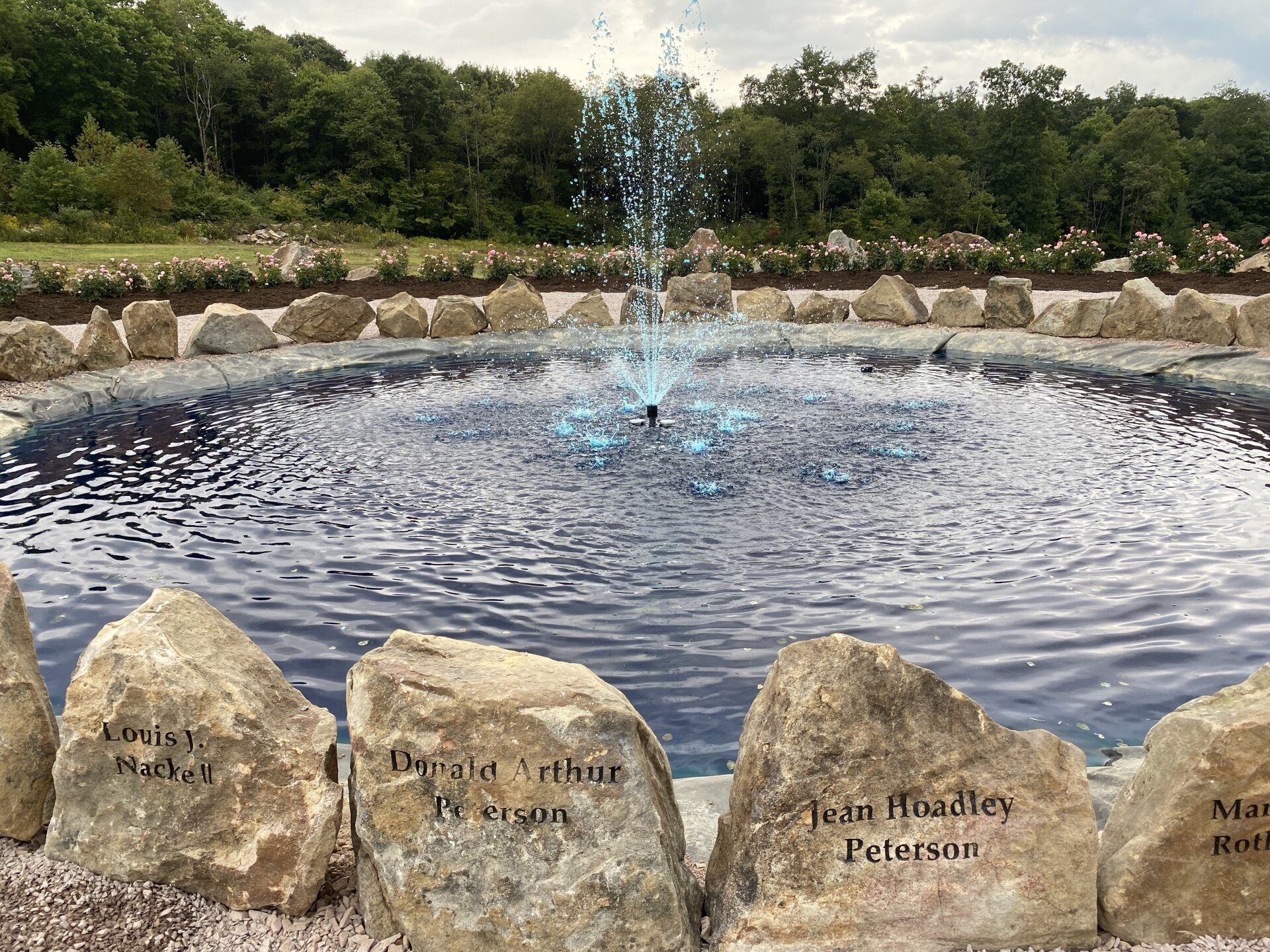 The names of the 40 heroes are engraved on the rocks surrounding the fountain in the center of the Remember Me Rose Garden. May we “Never Forget” them and their spirit of unity, faith, courage, and conviction in the face of extraordinarily desperate circumstances. They are true heroes!!